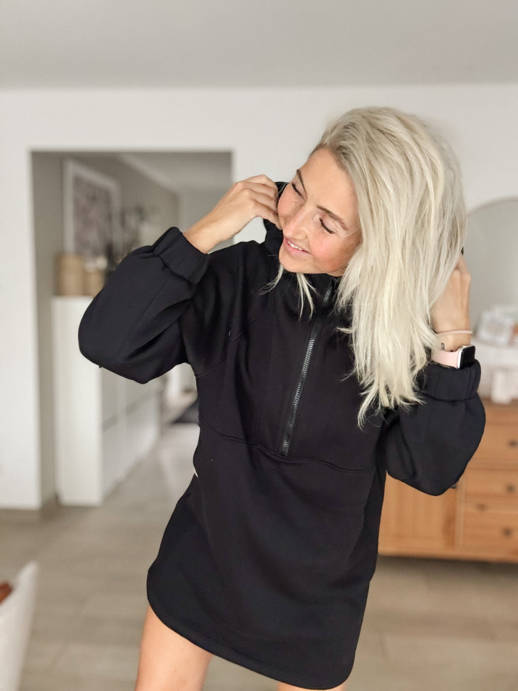 Frau Kauf – Oversize Hoodiekleid mit Zipper